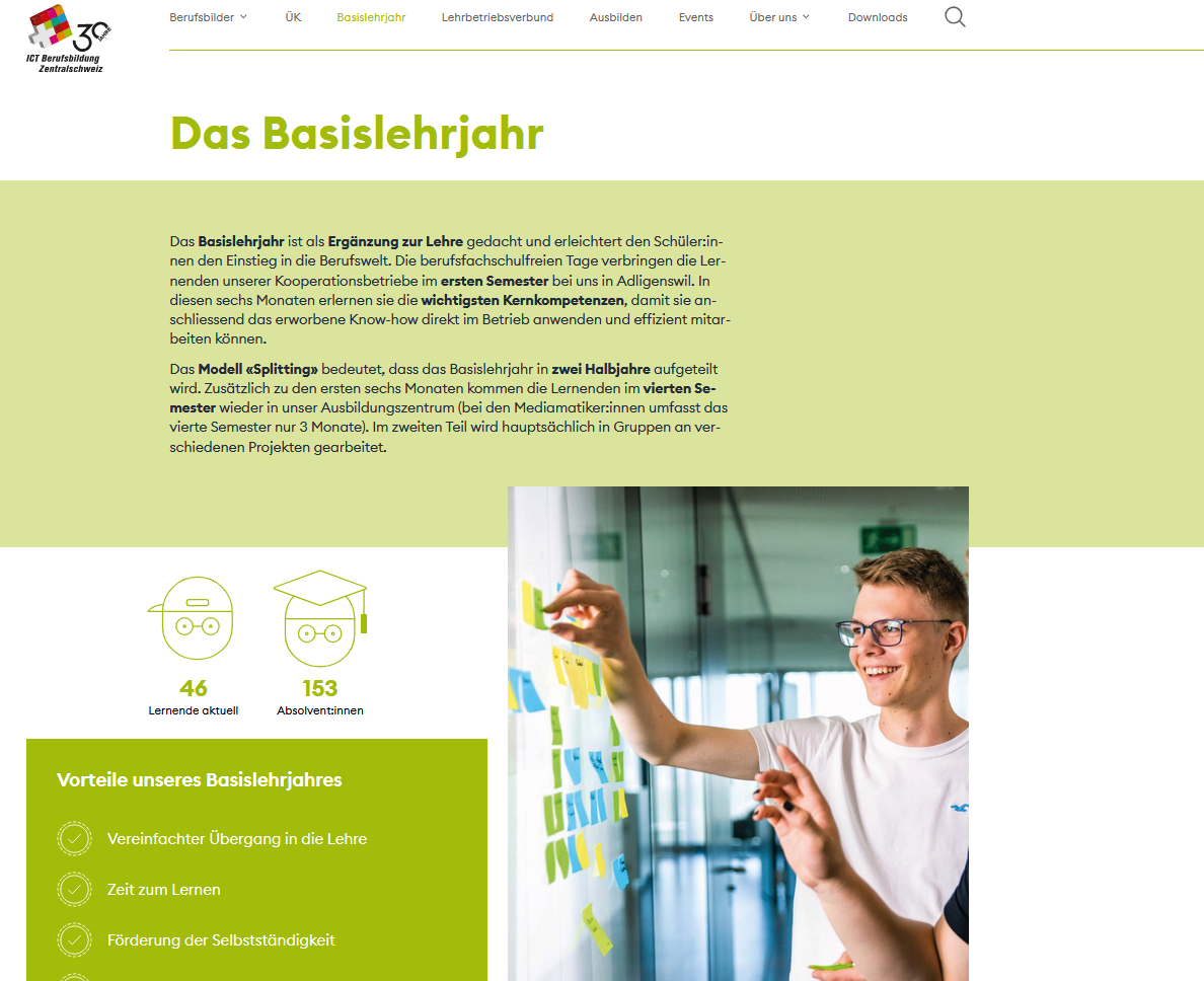 für Mediamatik-Lernende ein Basislehrjahr als erleichterter Einstieg in die Berufswelt, in Zusammenarbeit mit dem Berufsverband ICT-BZ
